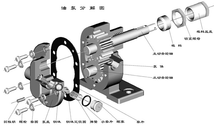 此系列齒輪泵主要有齒輪、軸、泵體、泵蓋、軸承套、軸端密封等組成。齒輪經(jīng)氮化處理有較高的硬度和耐磨性。與軸一同安裝在可更換的軸套內(nèi)運(yùn)轉(zhuǎn)。泵內(nèi)全部零件的潤滑均在泵工作時(shí)利用輸送介質(zhì)而自動(dòng)達(dá)到。