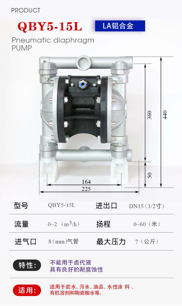 QBY5-15L型鋁合金氣動隔膜泵