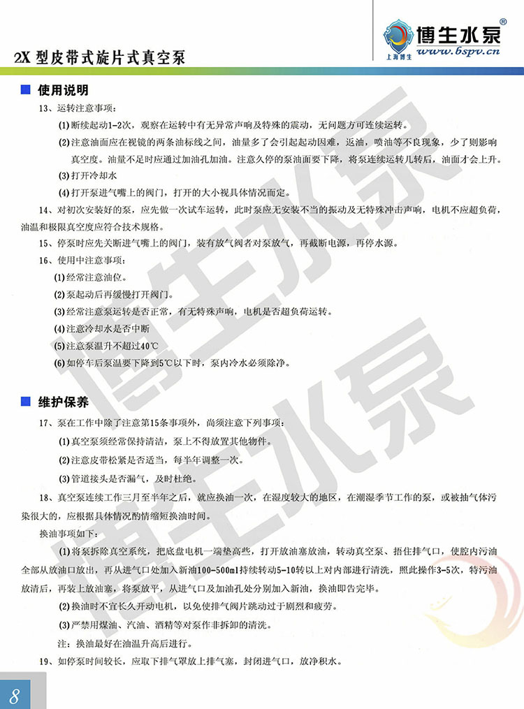 3、真空泵一般在不低于5℃的室溫及不高于90%的相對(duì)溫度的環(huán)境內(nèi)使用。